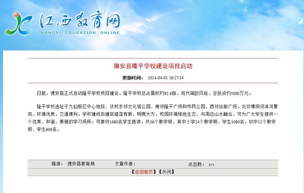 隆平中學(xué)是以袁隆平院士命名的一所高級(jí)中學(xué),德安縣正式啟動(dòng)隆平學(xué)校項(xiàng)目建設(shè)。隆平學(xué)??傉济娣e約92.8畝,現(xiàn)代簡(jiǎn)歐風(fēng)格,總投資約5000萬(wàn)元。